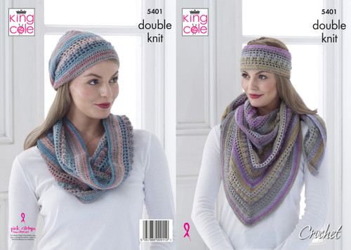 King Cole 5401 Riot DK Shawl, Cowl & Hat Crochet Pattern