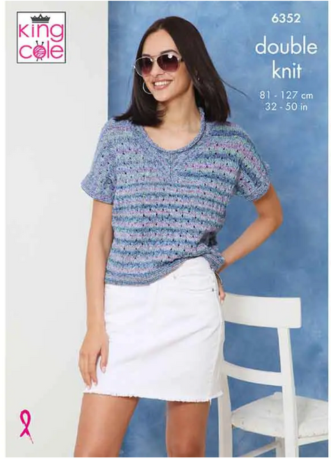 Description Pattern includes two ladies summer tops Knitted using King Cole Jamboree DK Yarn requirements are in the images section